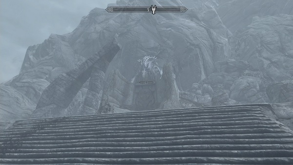 ドラゴンがシャウトの石碑の上に佇んでいます。ここはドラゴンとの戦闘のみの屋外マップとなります。