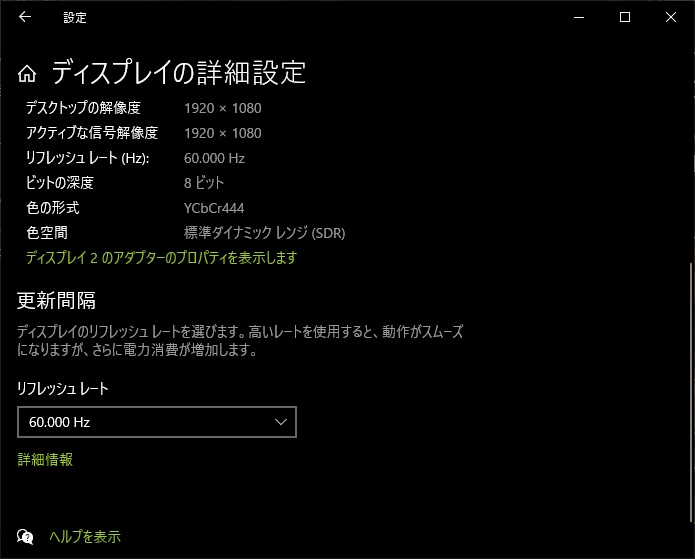 すでにマルチモニターにしている方は、別モニターのリフレッシュレートも確認してみましょう。